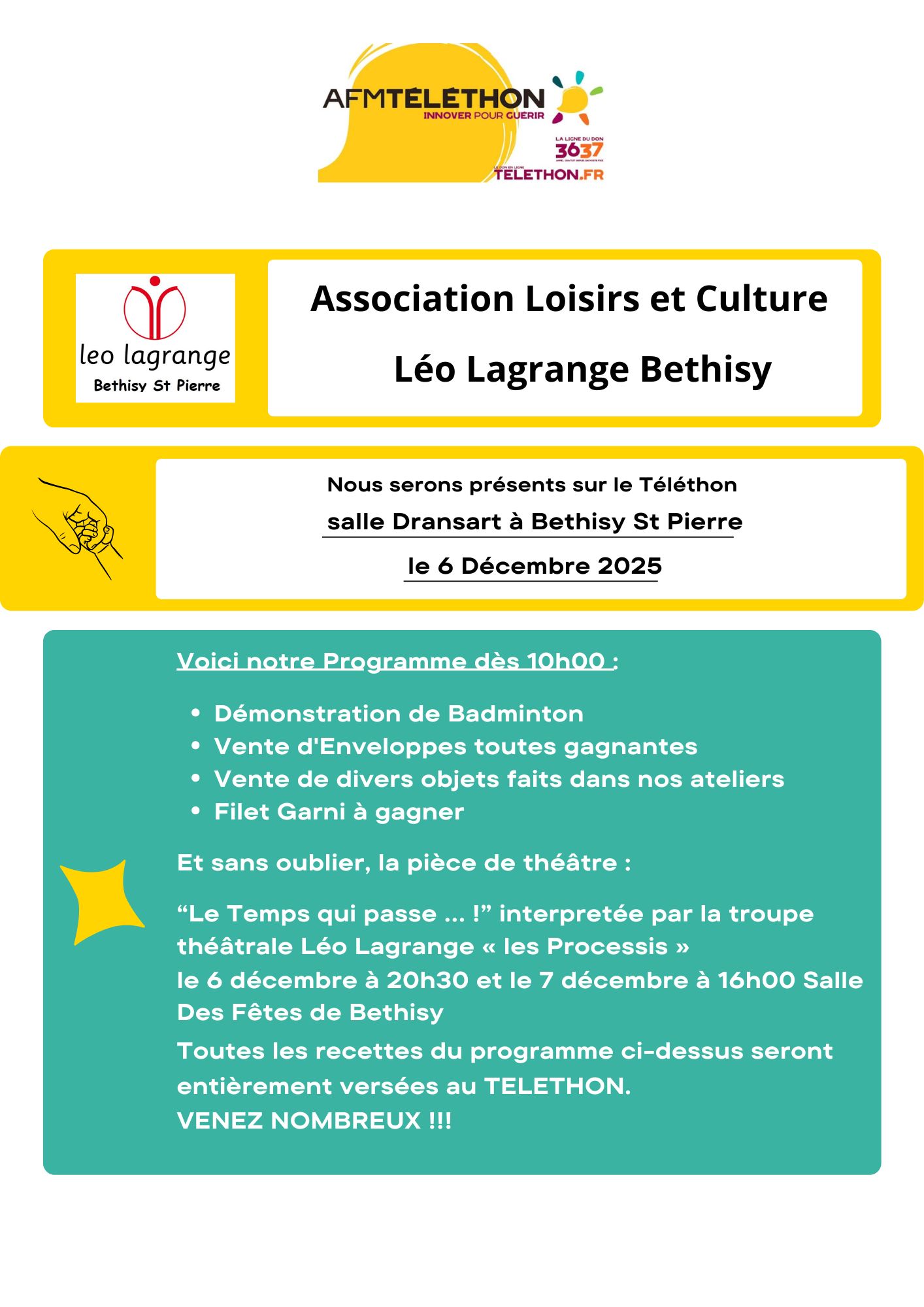 Egalement au profit du Théléthon : « les Prosecci » troupe théâtrale Léo Lagrange les 6 et 7 décembre