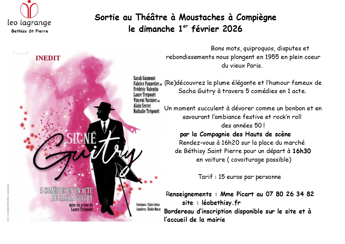Sortie au Théâtre à Moustache de Compiègne le dimanche 1er février après midi